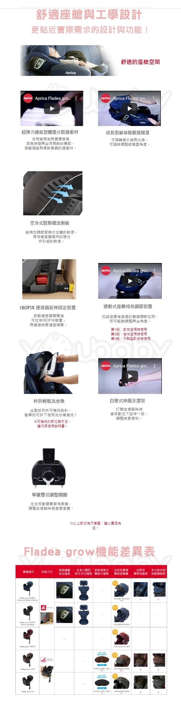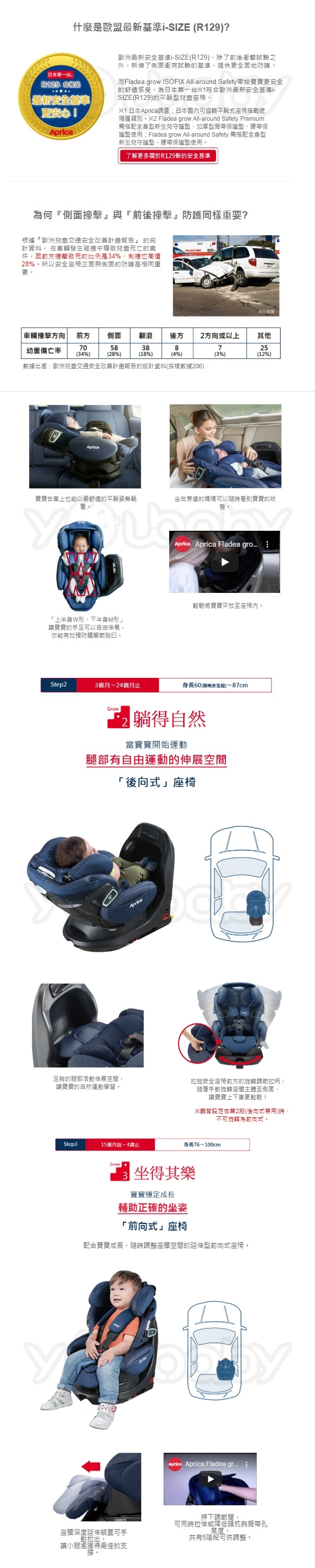 愛普力卡 Aprica Fladea grow isofix 0-4歲 臥床平躺型汽車安全座椅|旋轉型汽座