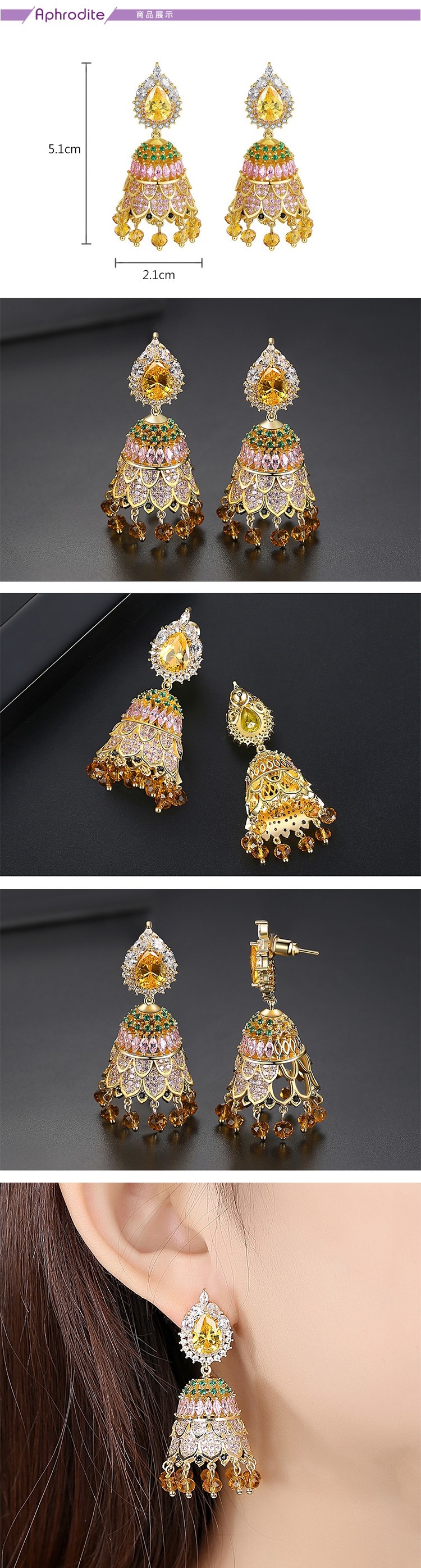 【愛芙晶鑽】華麗民族風彩鋯水滴寶石微鑲美鑽流蘇鈴鐺造型耳環 造型耳環 美鑽耳環 流蘇耳環
