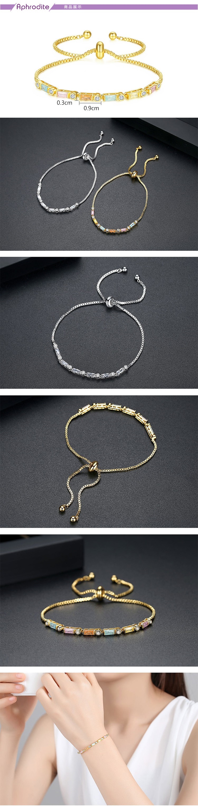 【愛芙晶鑽】華麗彩色鋯石方晶美鑽造型手鍊 造型手鍊 美鑽手鍊  (2款任選)