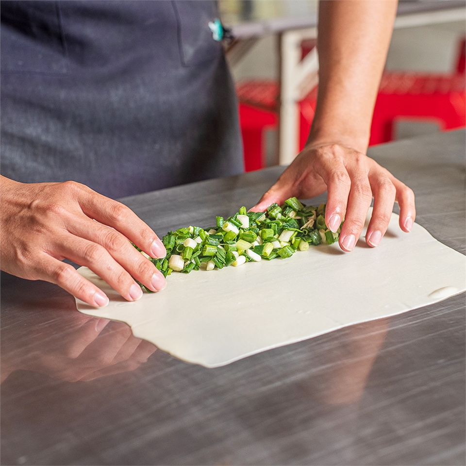 精準的比例、自家人都喜歡的健康美味、濃厚的人情味,是星寶蔥體驗農場創辦人張政雄和葉美月的堅持,工程師退休的張政雄,回到故鄉三星種蔥,無論是種三星蔥、做餅,從厚厚一疊的天氣資料表、度量衡工具…,在在可見工程師家庭的研究精神與對食材黃金比例的講究。