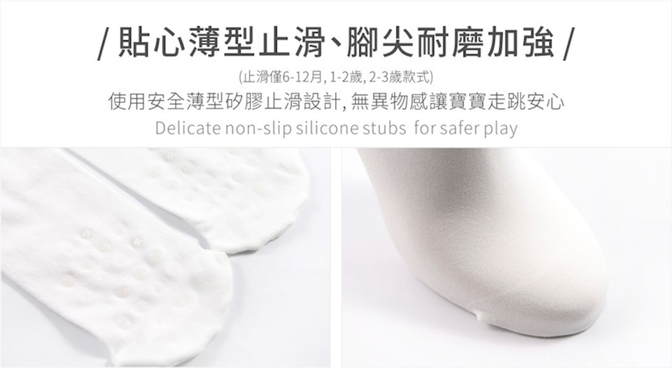 止滑設計 :僅6-12個月, 1-2歲, 2-3歲的尺寸有止滑設計