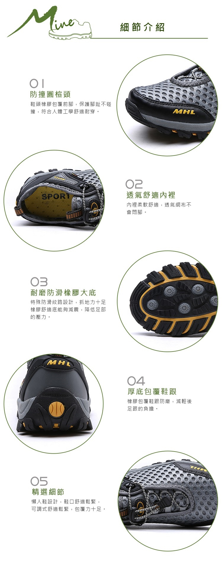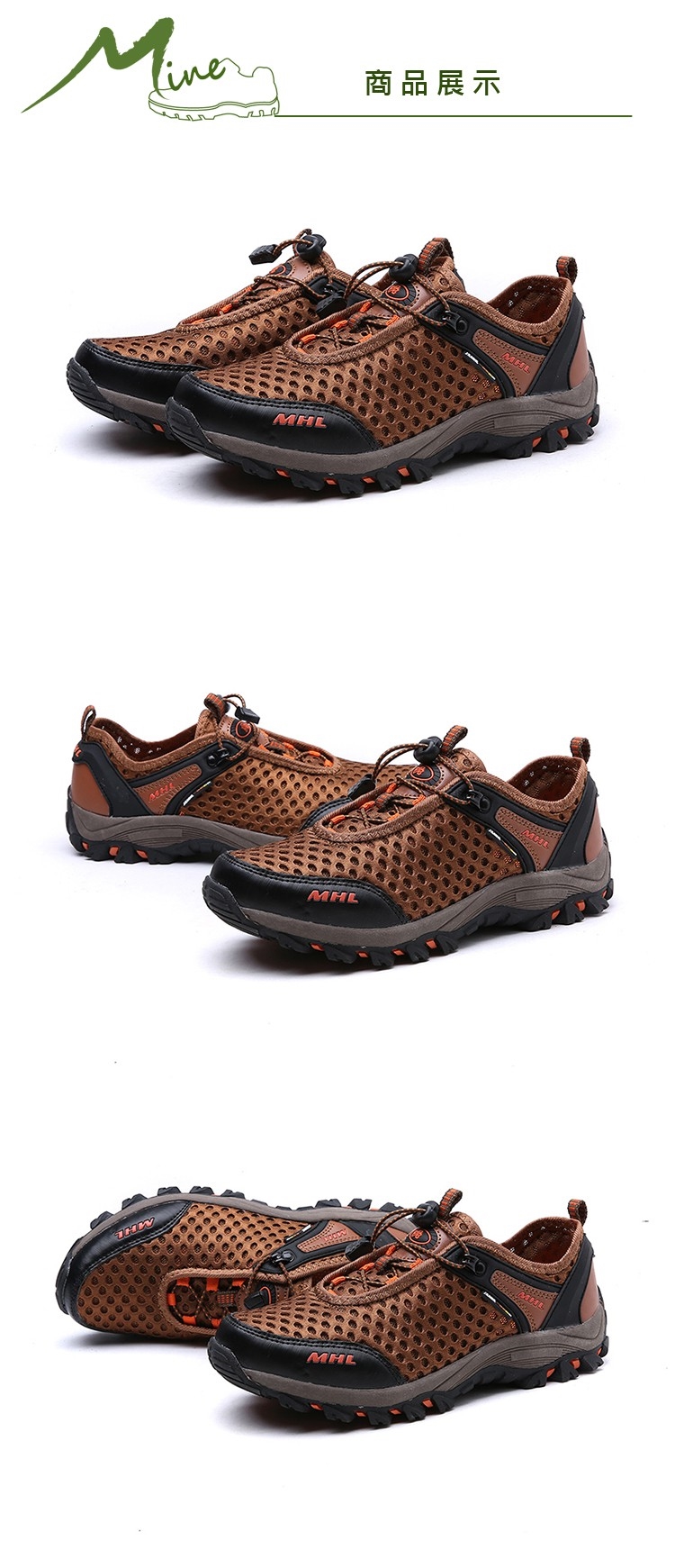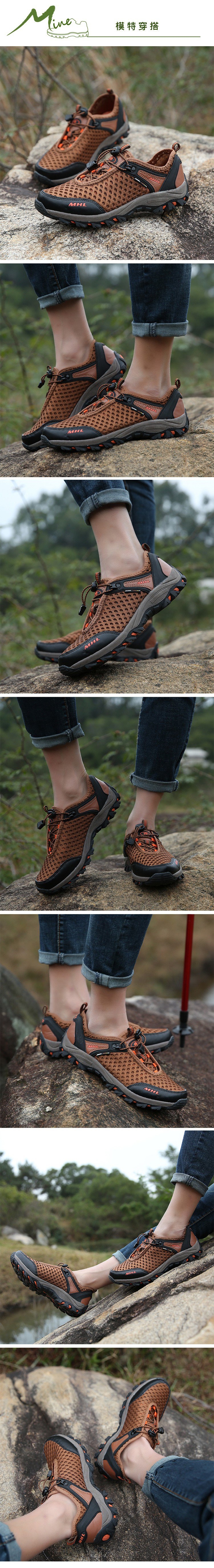 【MINE】休閒鞋 登山休閒鞋/透氣網面束帶機能戶外登山休閒鞋 -男鞋 棕