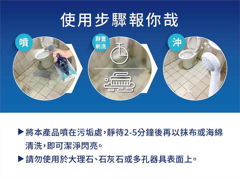 ※請勿在對酸性較為敏感的表面上使用,例如大理石,石灰石或石灰華表面。