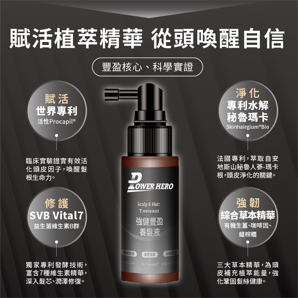 Q:PowerHero®的【強健豐盈養髮液】有什麼差異特色?
