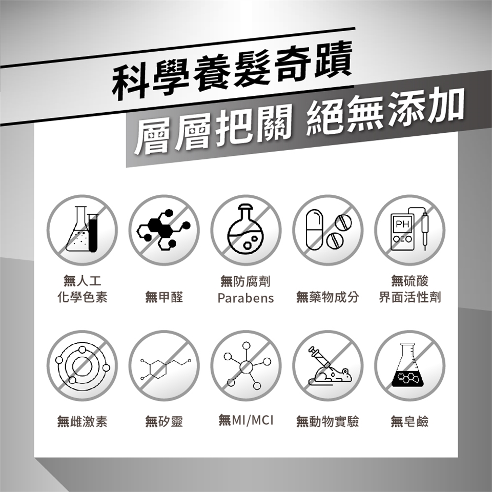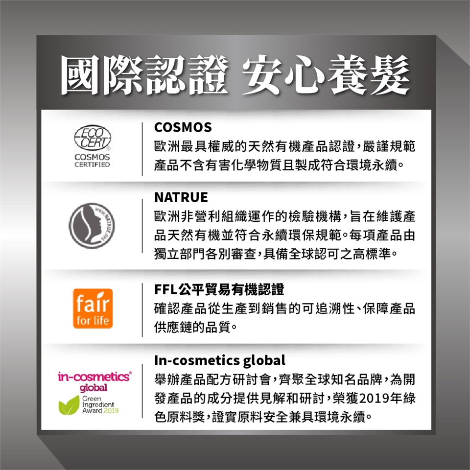 請認明有專利且添加足量的原料,並挑選成分天然且清楚標示的產品,避免造成頭皮刺激。