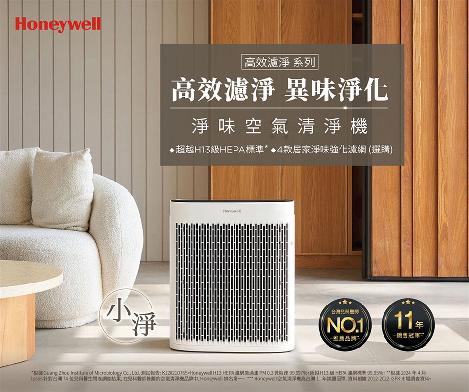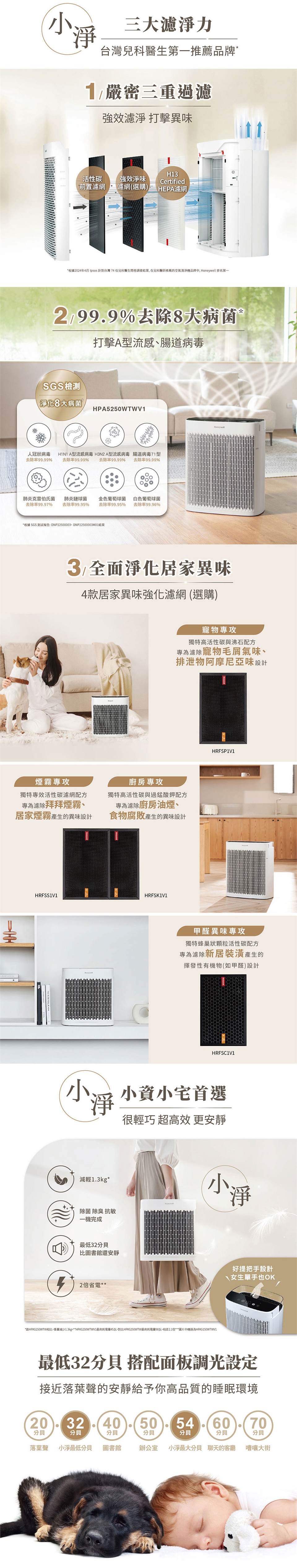 ●如欲加強淨味效果,可加購強效淨味濾網:HRFSS1(煙霧)、HRFSC1(家居裝修)、HRFSK1(廚房)、HRFSP1(寵物) (需另購2片,建議3個月更換一次)