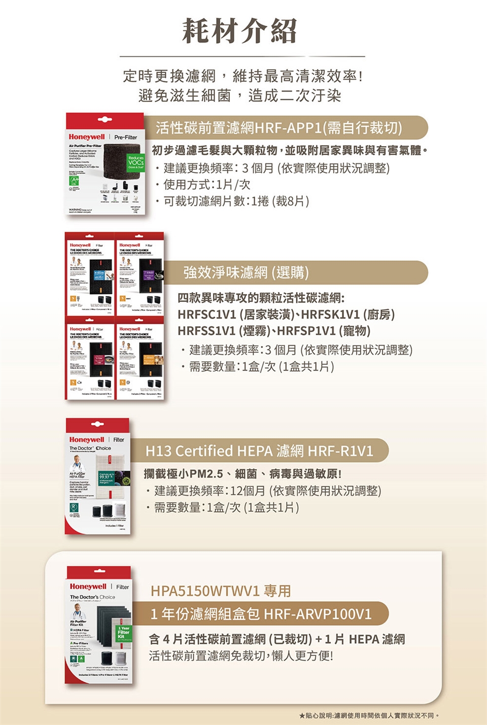 ●濾網更換頻率依個人使用頻率、環境而可能有所不同