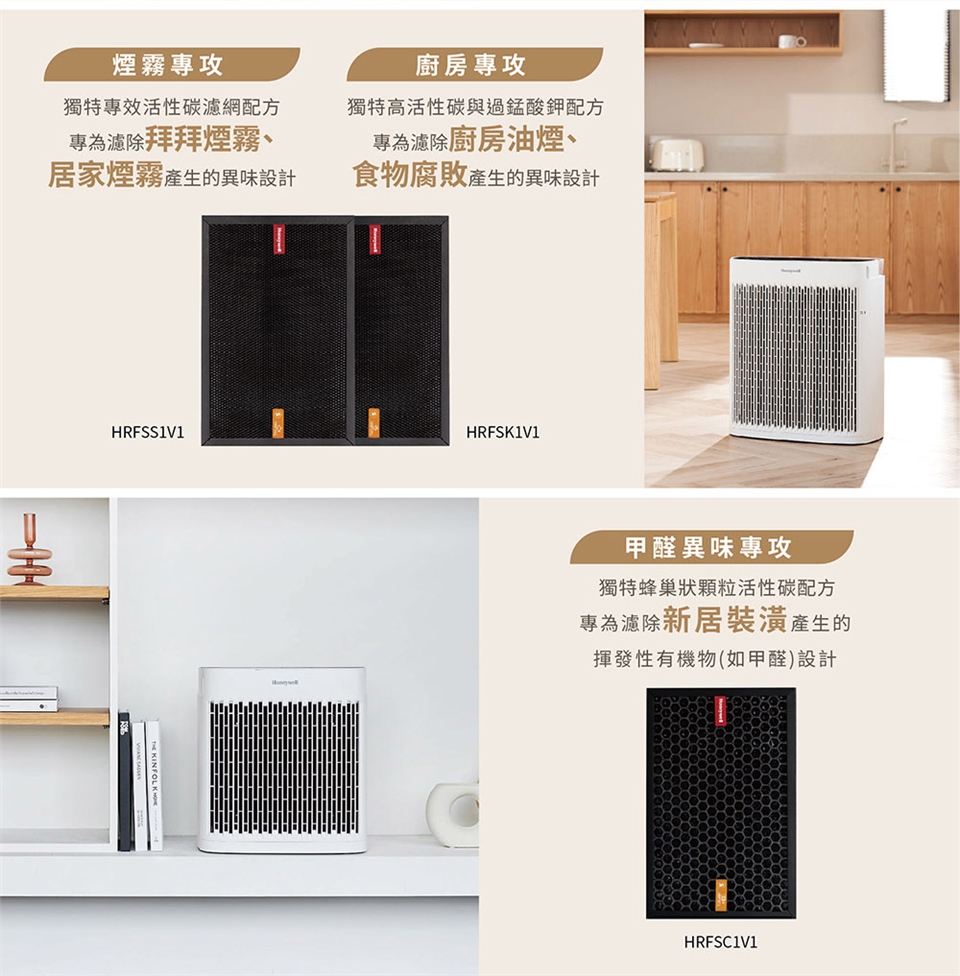 ●如欲加強淨味效果,可加購強效淨味濾網:HRFSS1(煙霧)、HRFSC1(家居裝修)、HRFSK1(廚房)、HRFSP1(寵物) (需另購1片,建議3個月更換一次)