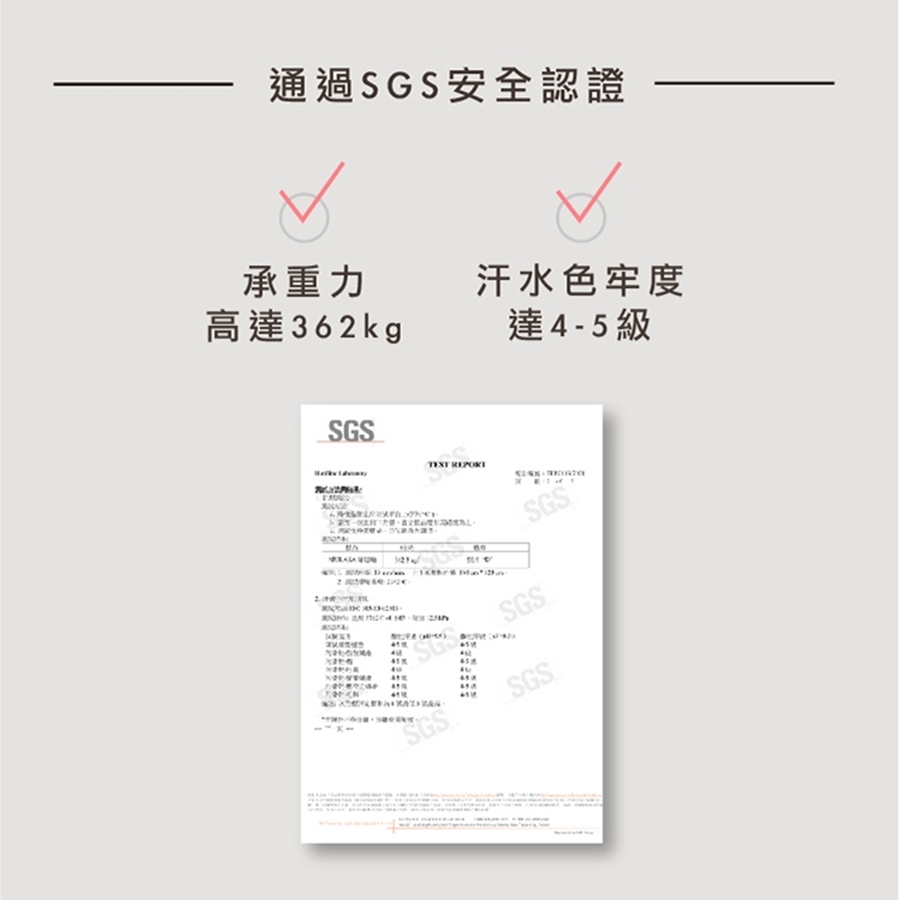 - 通過SGS安全認證,承重力高達362kg、汗水色牢度達4-5級。