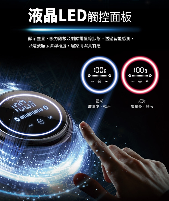 ◎【液晶顯示】可立即顯示塵量感知及剩餘電量