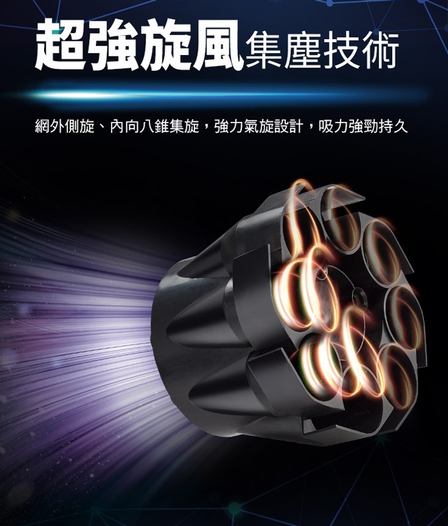 ◎【超強旋風集塵技術】八錐集旋強力氣旋設計,吸力強勁持久