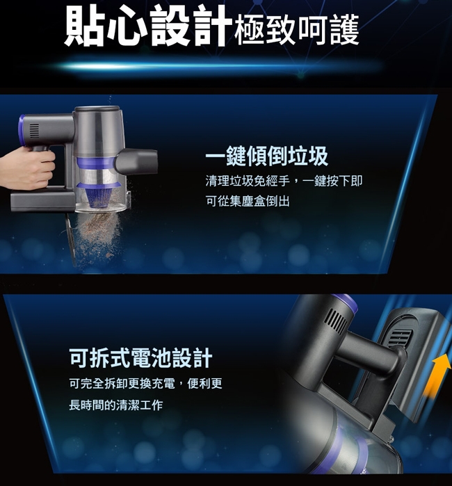 ◎【使用壽命長】採用DC無刷馬達吸力更強勁,使用壽命更長
