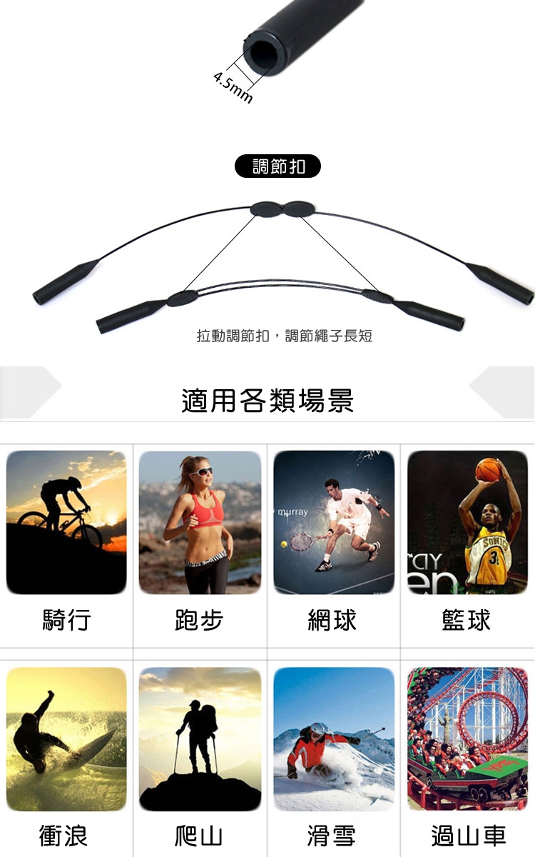 seoul show首爾秀 運動鋼絲可調眼鏡繩墨鏡平光眼鏡鍊老花近視防丟鍊