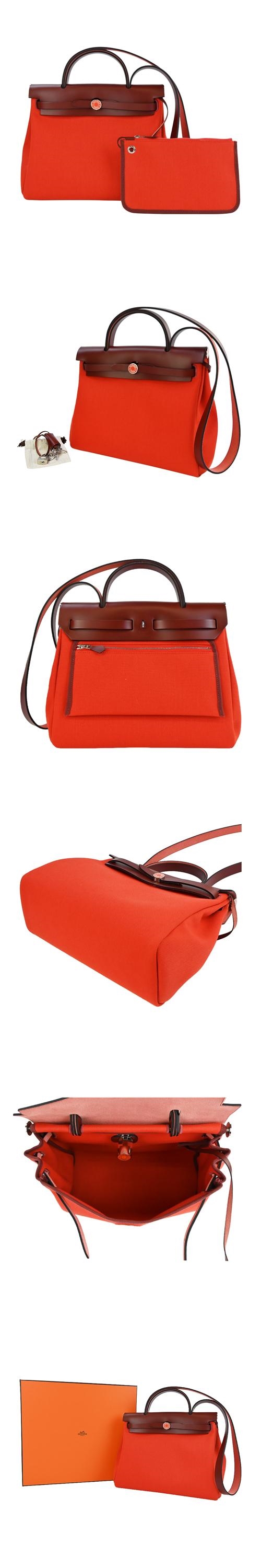 Hermes 愛馬仕Herbag 31cm 防水帆布兩用包(U刻/AB橘/紅棕/琺瑯釦)