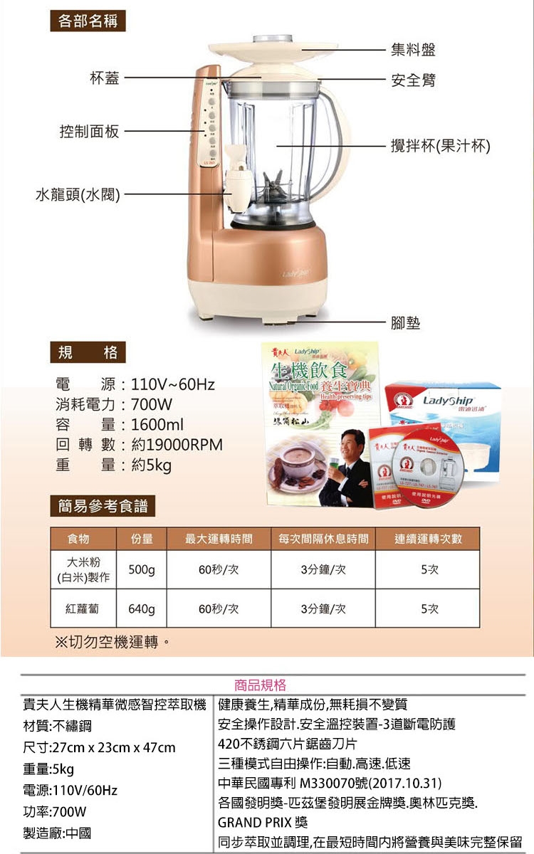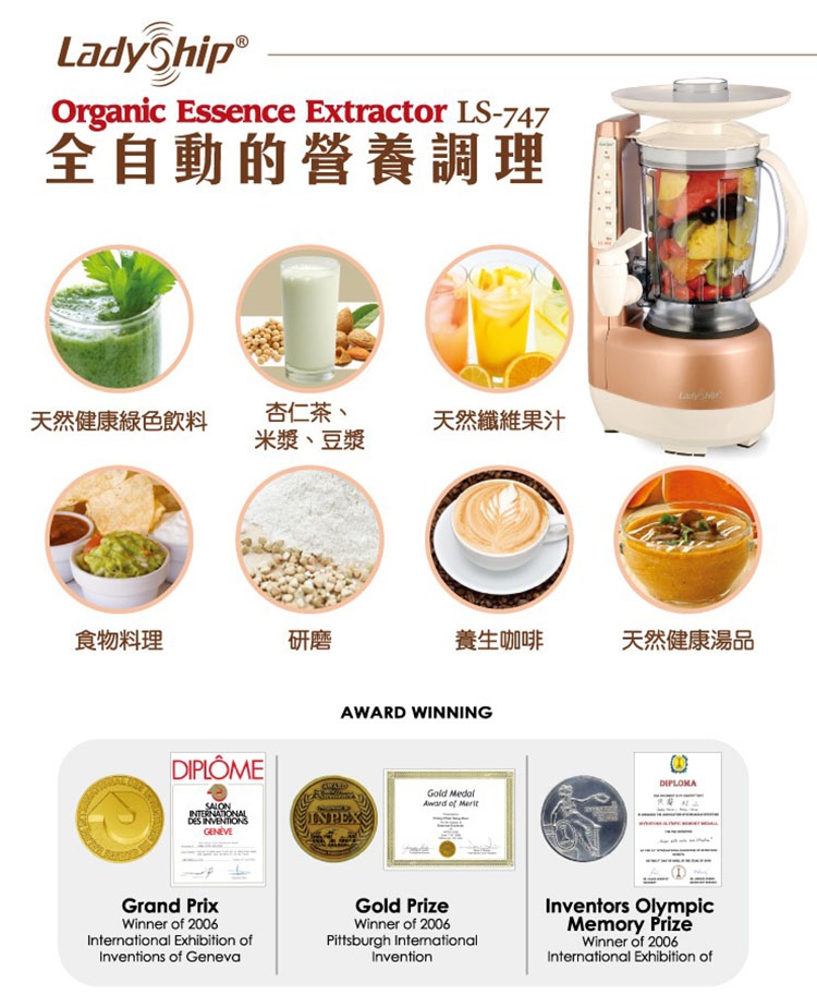 【Ladyship】貴夫人生機精華萃取機+專用水漏斗組合(LS-747-P)
