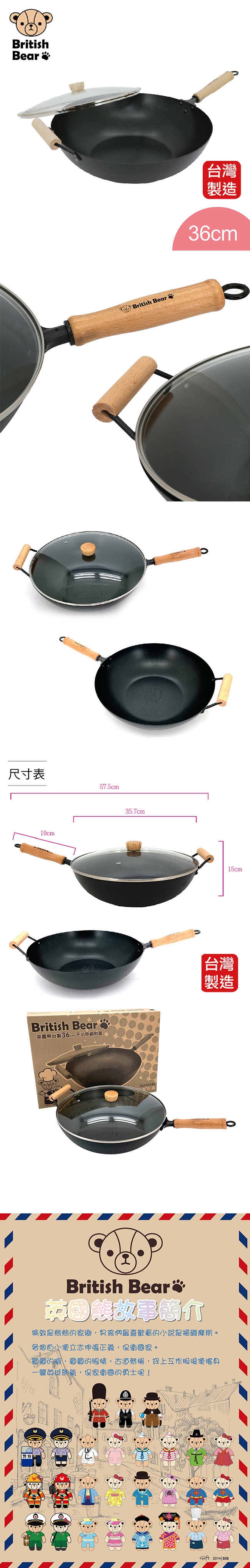 英國熊 36cm不沾炒鍋附蓋 GU-0241N 台灣製