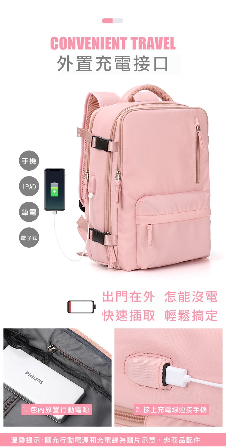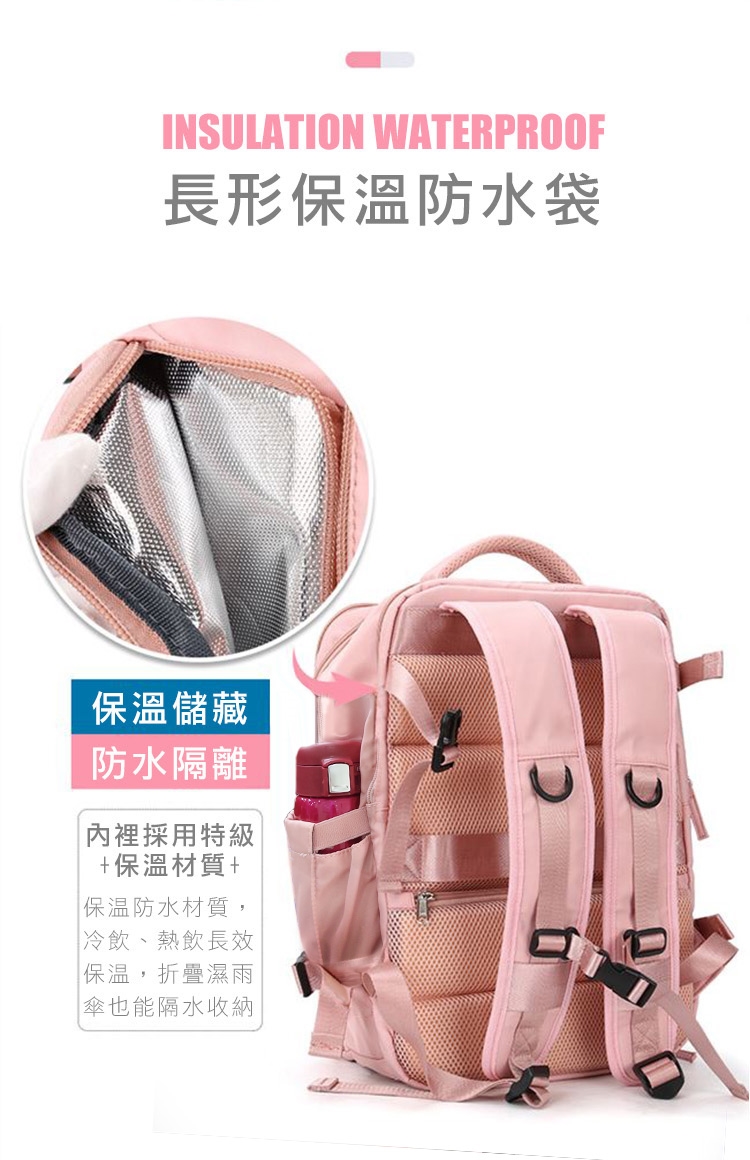 輕旅遊3-5天無需帶到佔空間又笨重的行李箱 ”乾濕分離輕旅行多收納後背包”乾濕防水隔離設計,多樣分層好收納,180°翻蓋展開, 快接USB接口,便利獨立鞋袋,長型防水保溫袋,多功能完整收納,重新定義國旅輕旅行,放下沉重行囊立刻出發~
