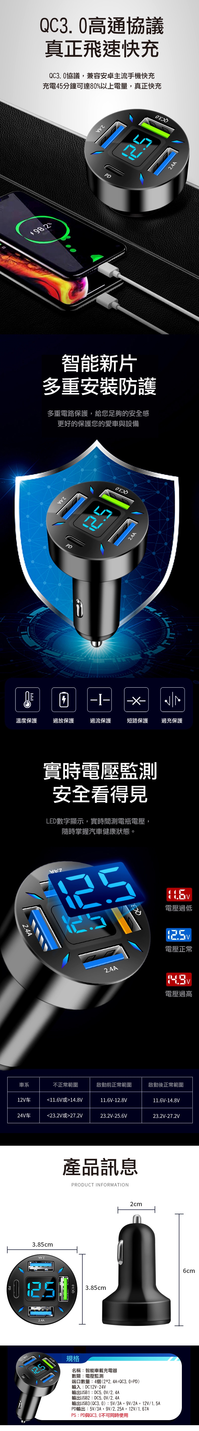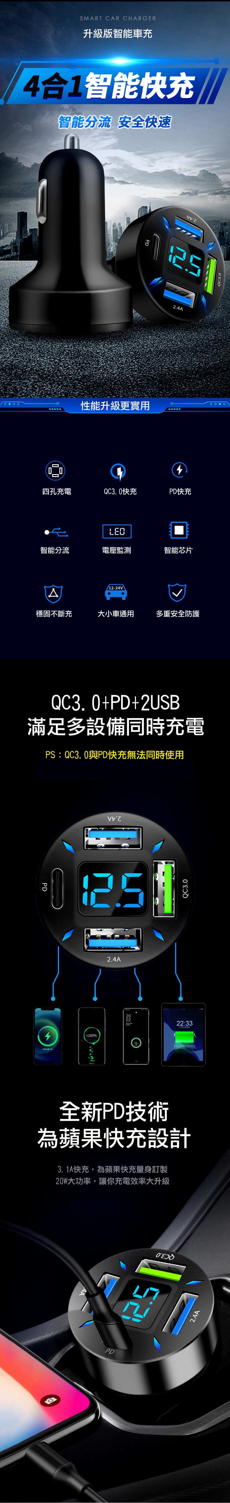 品名:PD20W+QC3.0+2.4A 4孔車充