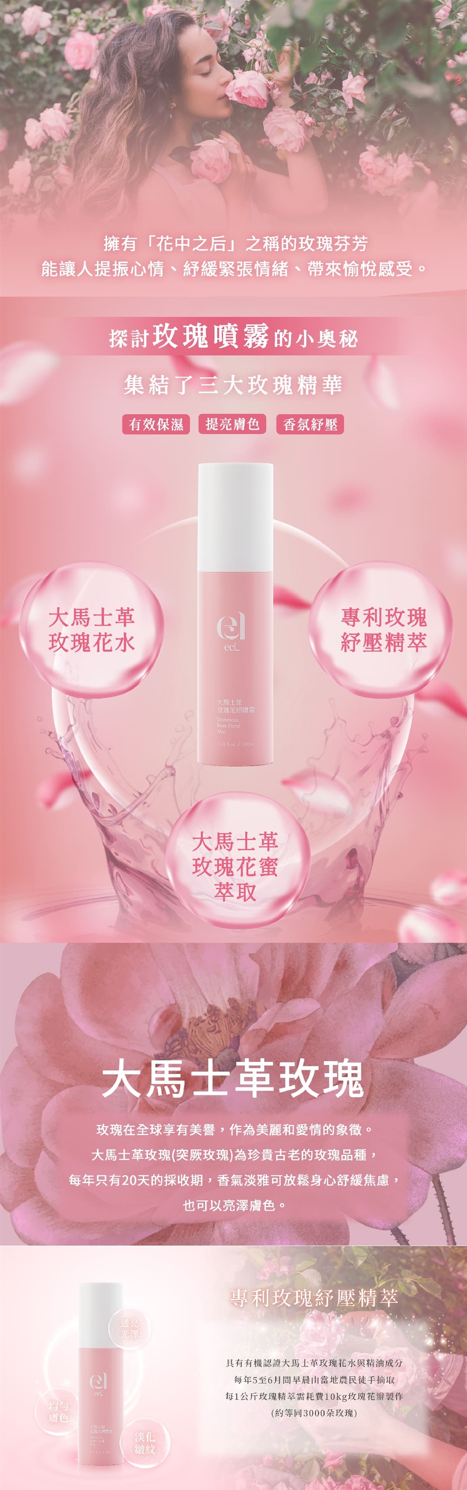 主商品:ecL大馬士革玫瑰花妍噴霧(100ml/瓶)*5瓶(開放一瓶體驗,退貨需歸還)