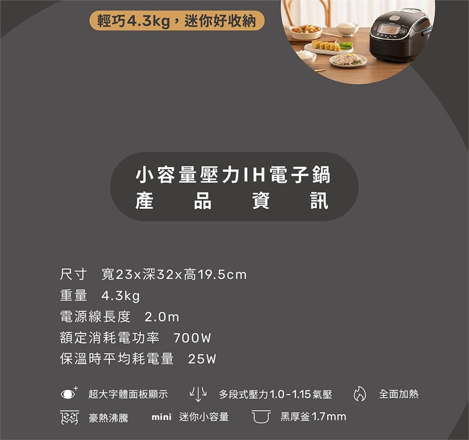 (1)台灣業界首發第一台日本製壓力IH小容量電子鍋。