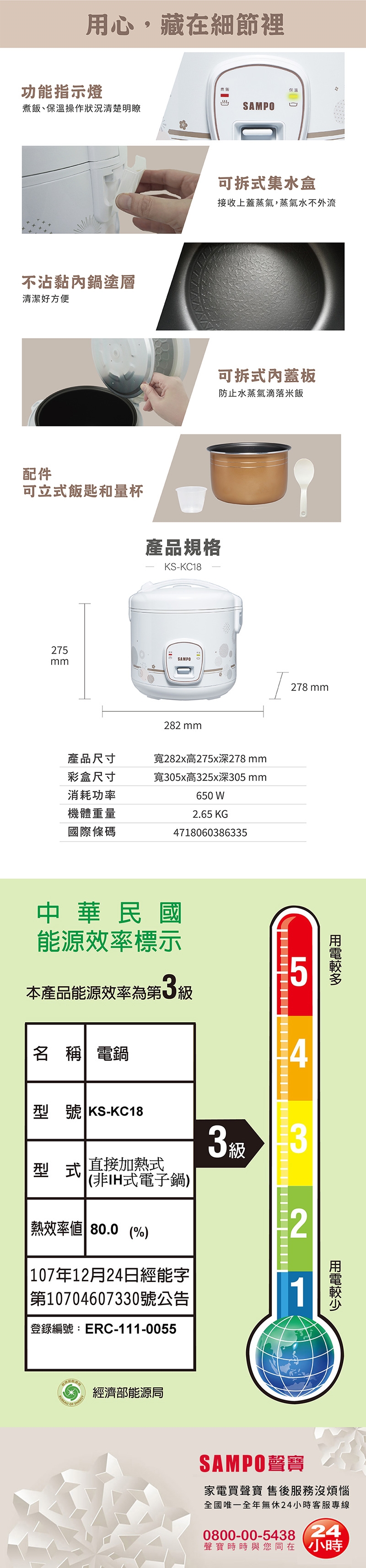◆不沾塗層內鍋+可拆式內蓋/蒸氣閥/集水盒,清潔方便。
