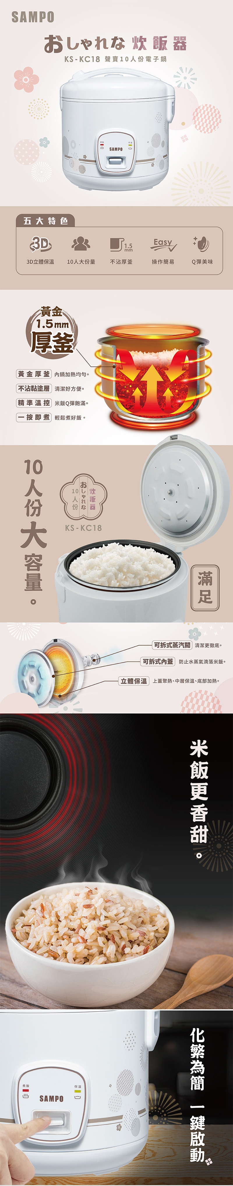 ◆10人份大容量,滿足全家人的胃。