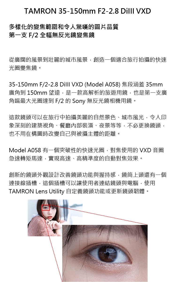 TAMRON 公司貨享有12個月保固。 詳細以官網公告為主http://www.tamron.com.tw/home.html 《原廠服務專線 02-2321-8258》