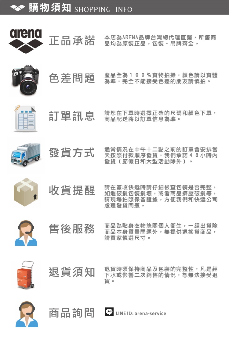 本店為ARENA品牌台灣總代理直銷,所售商品均為原裝正品,包裝、吊牌齊全。