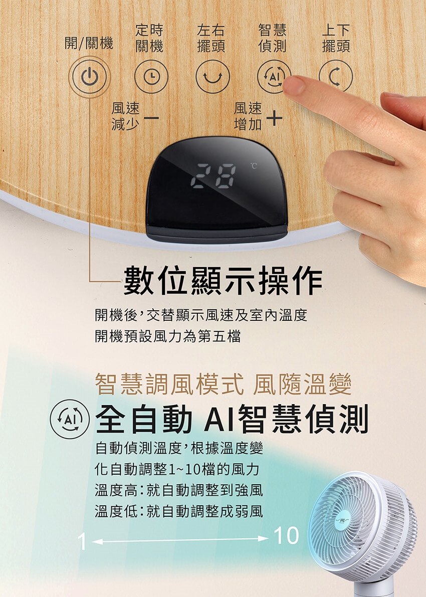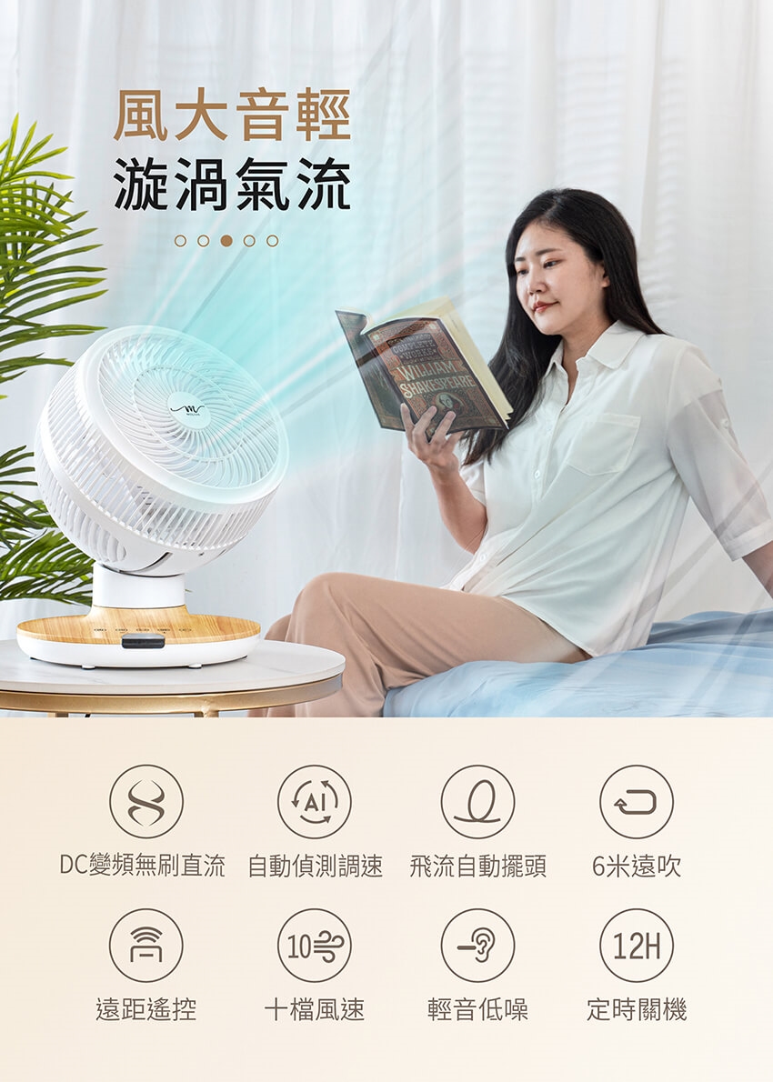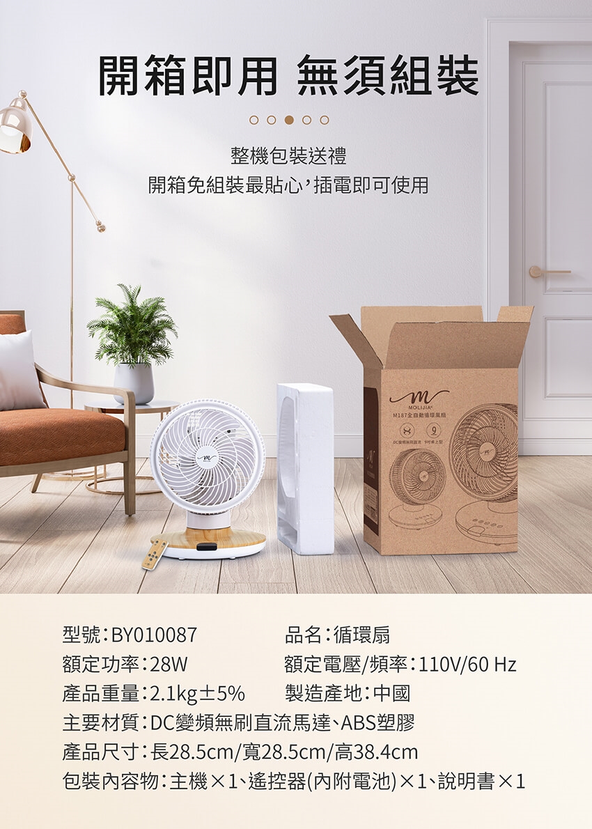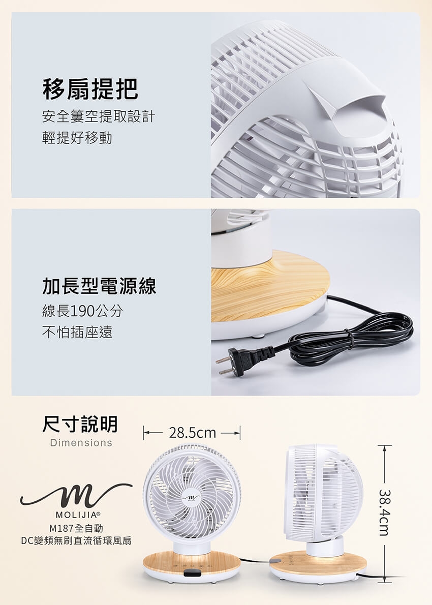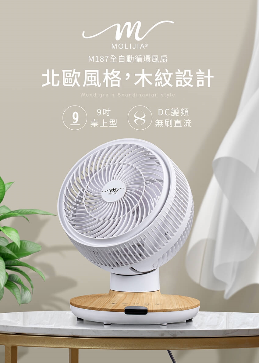 產品名稱:【MOLIJIA 魔力家】M187 全自動DC變頻無刷直流循環風扇-9吋/桌上型/木紋款