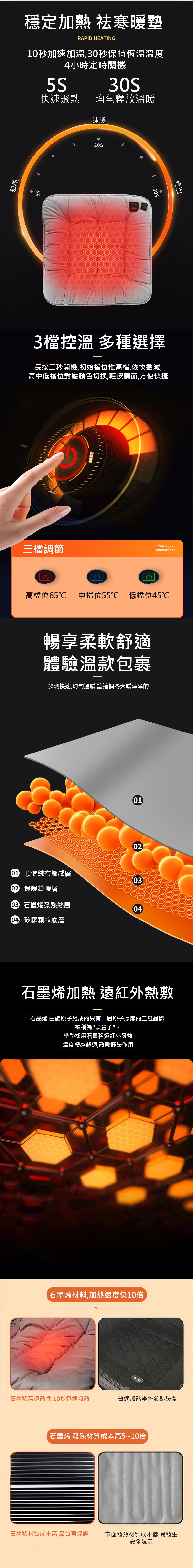 ◆黑科技石磨烯材質,10秒快速發熱,穩定加熱