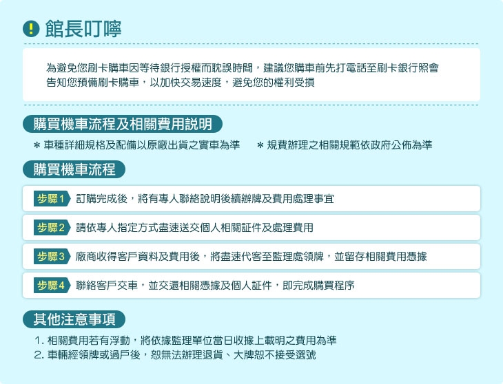 ◆車輛一經領牌即無法辦理退貨換貨及改色,訂購前請慎選車型及顏色.