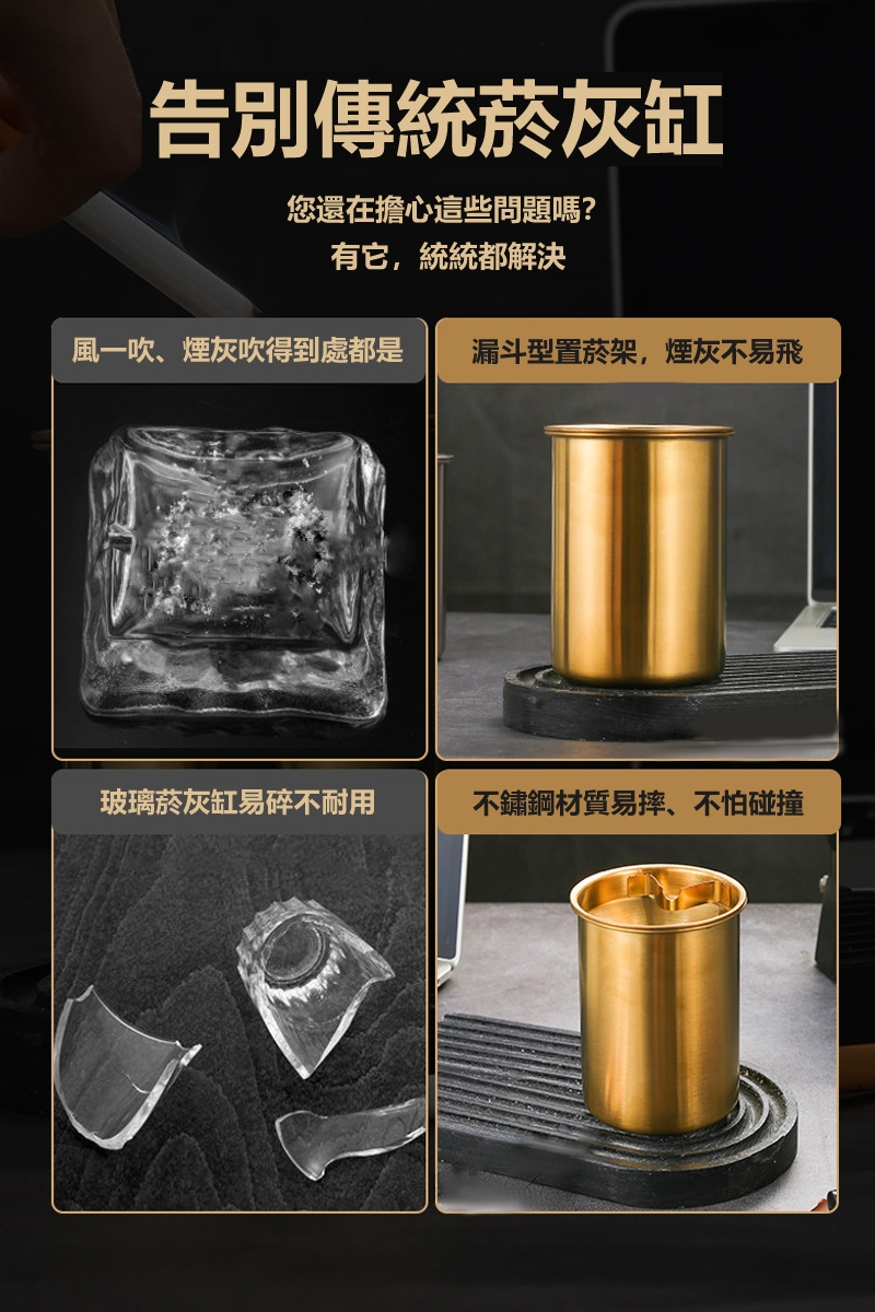 ◆漏斗型設計,煙灰滑落收集不亂飛