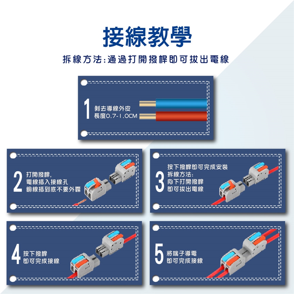 適用導線:軟線、硬線:0.2mm² -4.0mm²