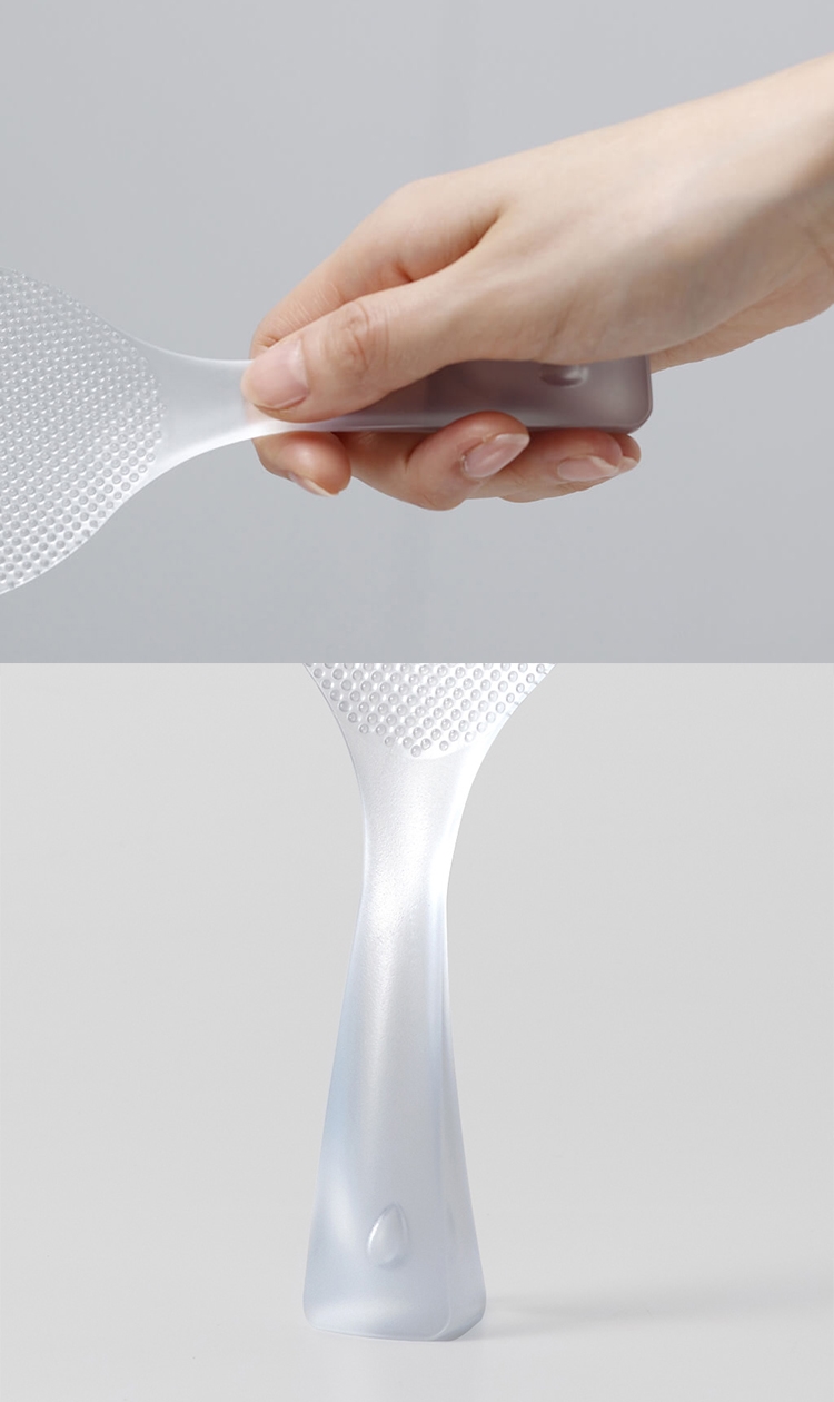 經過這樣眾多的想法,而融合打造出這款直立式——擁有像玻璃的半透明感、舒適又帶著有點奢華感的飯勺!