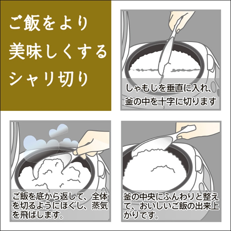 ●較長前端挖飯位置的長度,能輕易到達鍋子底部,更確實地翻攪到每個角落的米飯。
