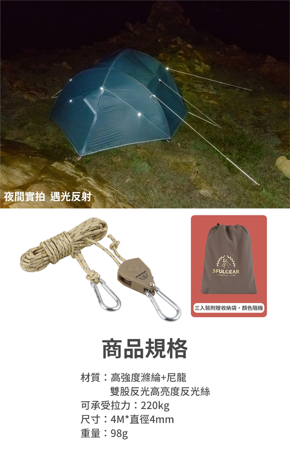 1. 三峰出(3F UL GEAR)原廠保固一年及終身保修,不包含自然使用下的材質老化。