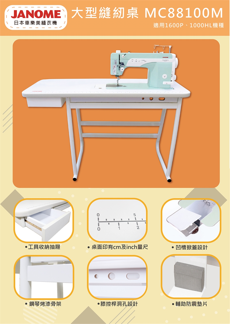 •主商品名稱:日本車樂美JANOME大型縫紉輔助桌MC88100M