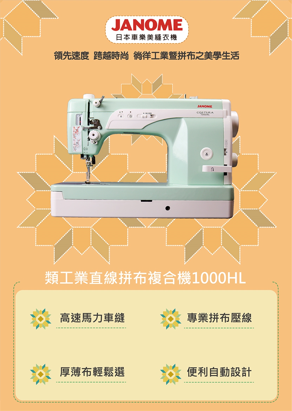 日本車樂美JANOME 超高速類工業直線車加送大型縫紉桌組合 1000HL