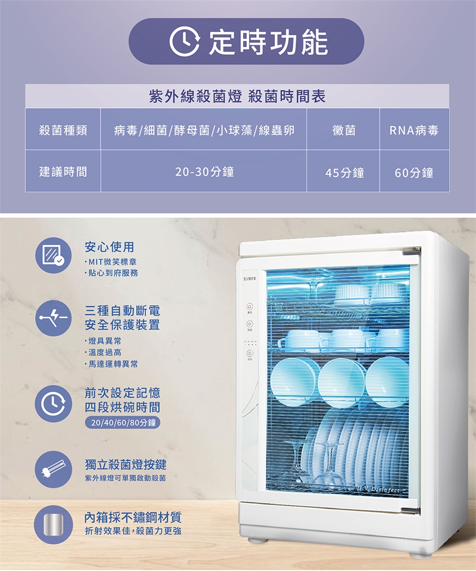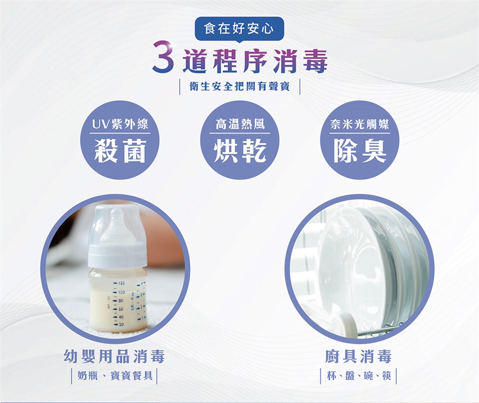 ◆UV紫外線殺菌+奈米光觸媒除臭,為家中食安把關。