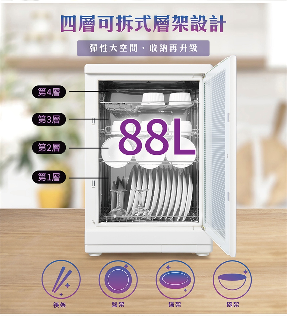◆四層層架大容量設計,各式餐具都好放。