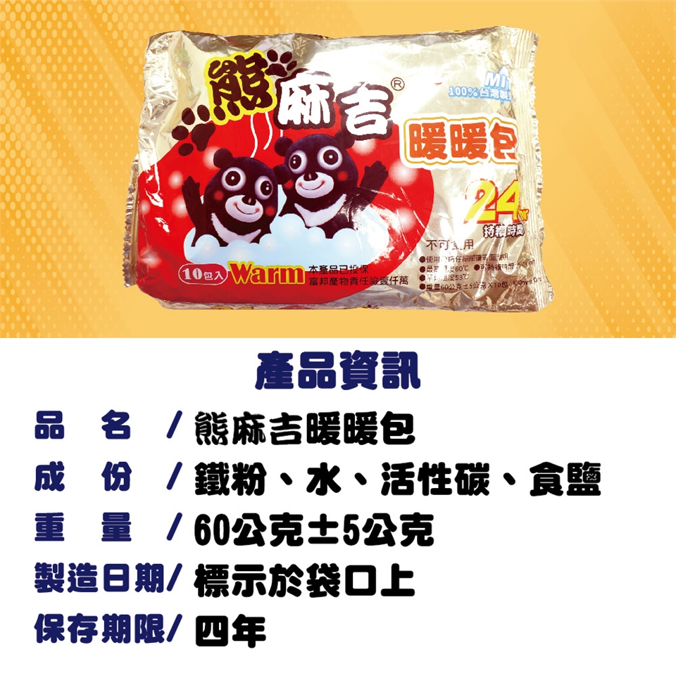 【熊麻吉】(即期品)手握式暖暖包 100%台灣製造 (10片/包) (H-099-10)