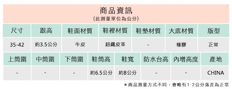 2.鞋類商品依功能及用途之不同,鞋底各有其止滑係數之個別不同,使用鞋類商品請用於正常平坦之路面,非雨鞋或雨靴類商品,請避免穿著於下雨濕滑路面上行走。