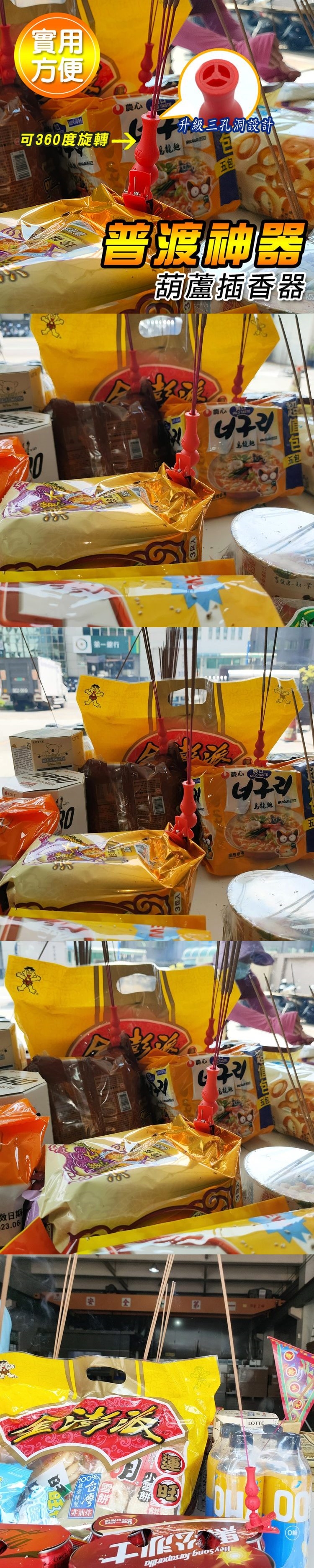 拜拜專用插香座夾,葫蘆造型、招財納福,只要輕輕一夾,避免直接接觸食物,碰觸到香灰及色料,香腳不用再插在食物上,乾淨衛生,可360度旋轉,隨意調整插香角度,三孔設計,可插三次香,適用於一般及大炷香使用