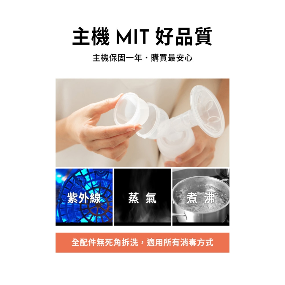 - 配件安心用-全配件可拆洗,煮沸、蒸氣、紫外線100%殺菌免顧慮