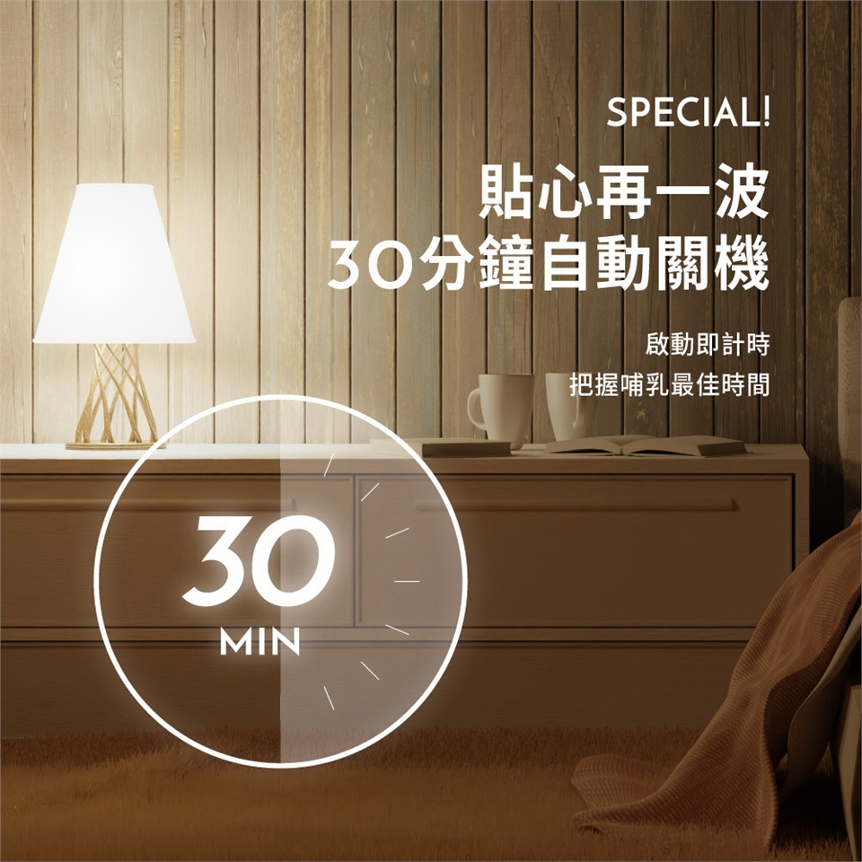 - 貼心計時功能-30分鐘自動關機,把握最佳哺乳時間