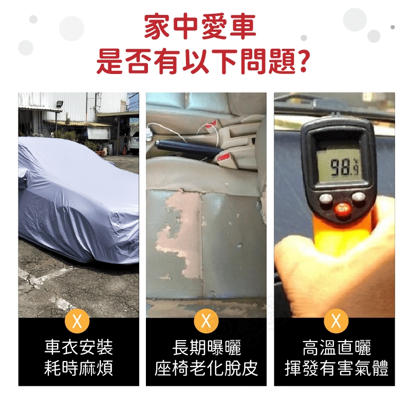 更可怕的是,如果常期將車內裝曝曬在太陽下,儀表板的塑膠、皮椅等都會加速老化、褪色!🚗🚗🚗