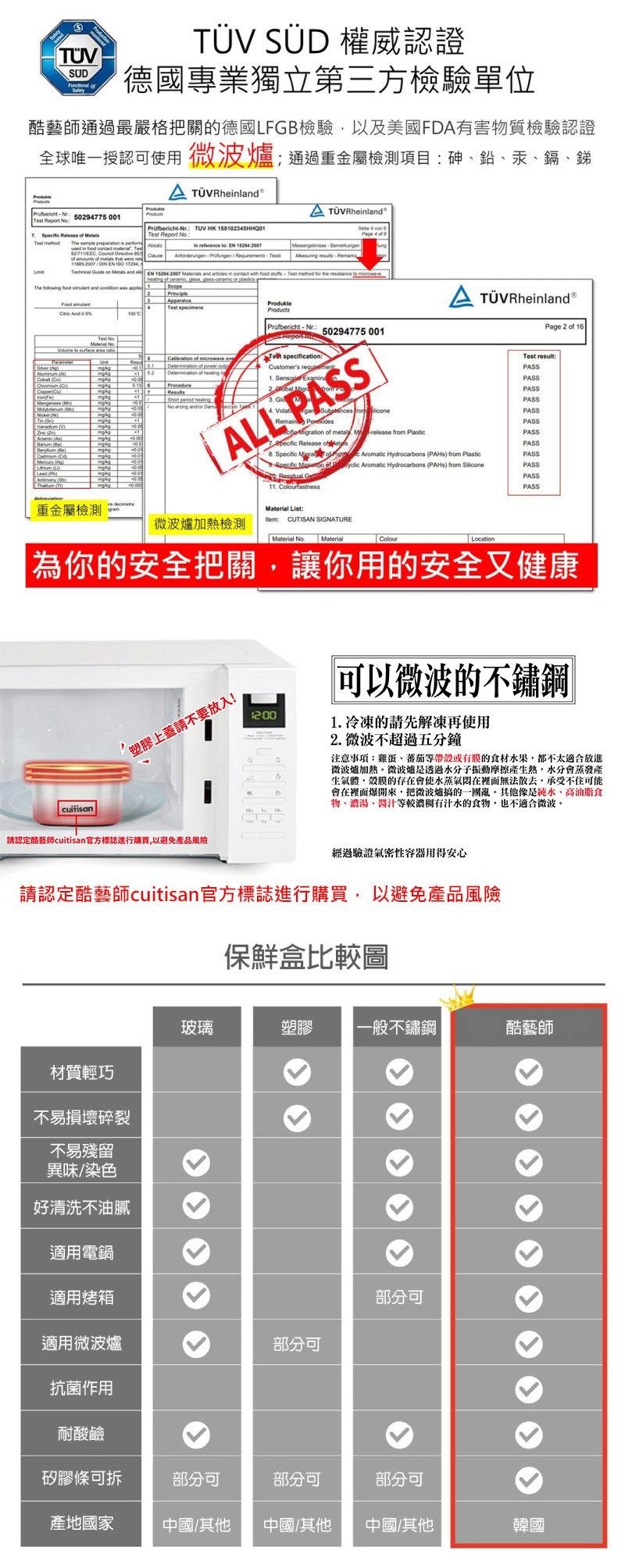 –不鏽鋼耐溫-40°C~400°C/上蓋耐溫-40°C~120°C(上蓋不可加熱)/膠條耐溫-40°C~120°C