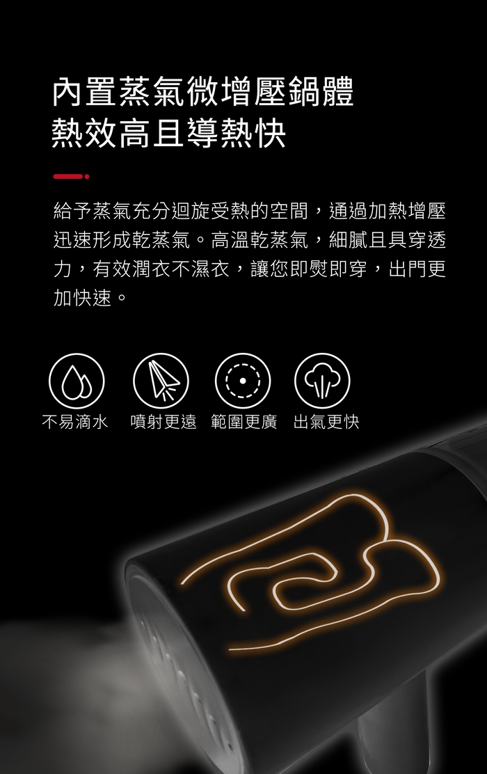 ●智能蒸氣加熱,瞬出蒸汽不傷衣物。