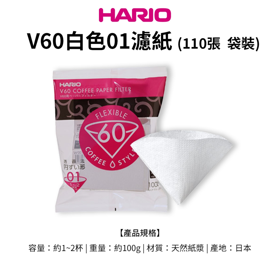 【HARIO官方】日本製V60錐形白色漂白01咖啡濾紙110張(適用V形濾杯)