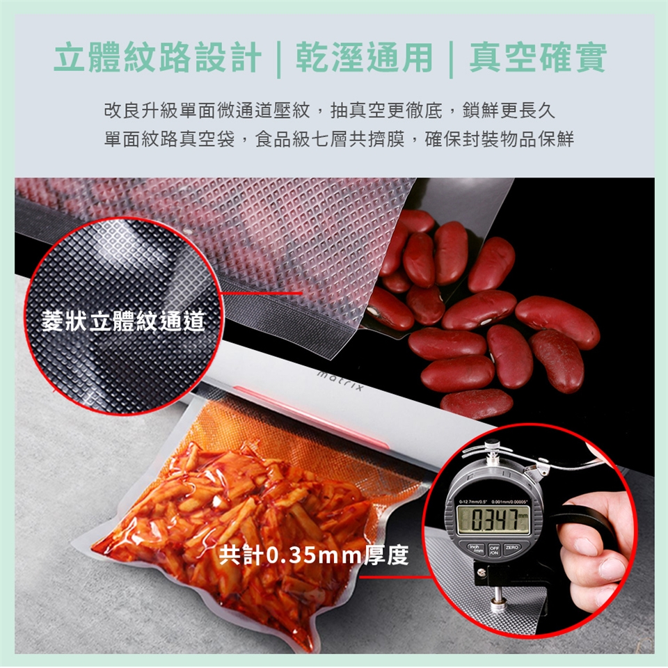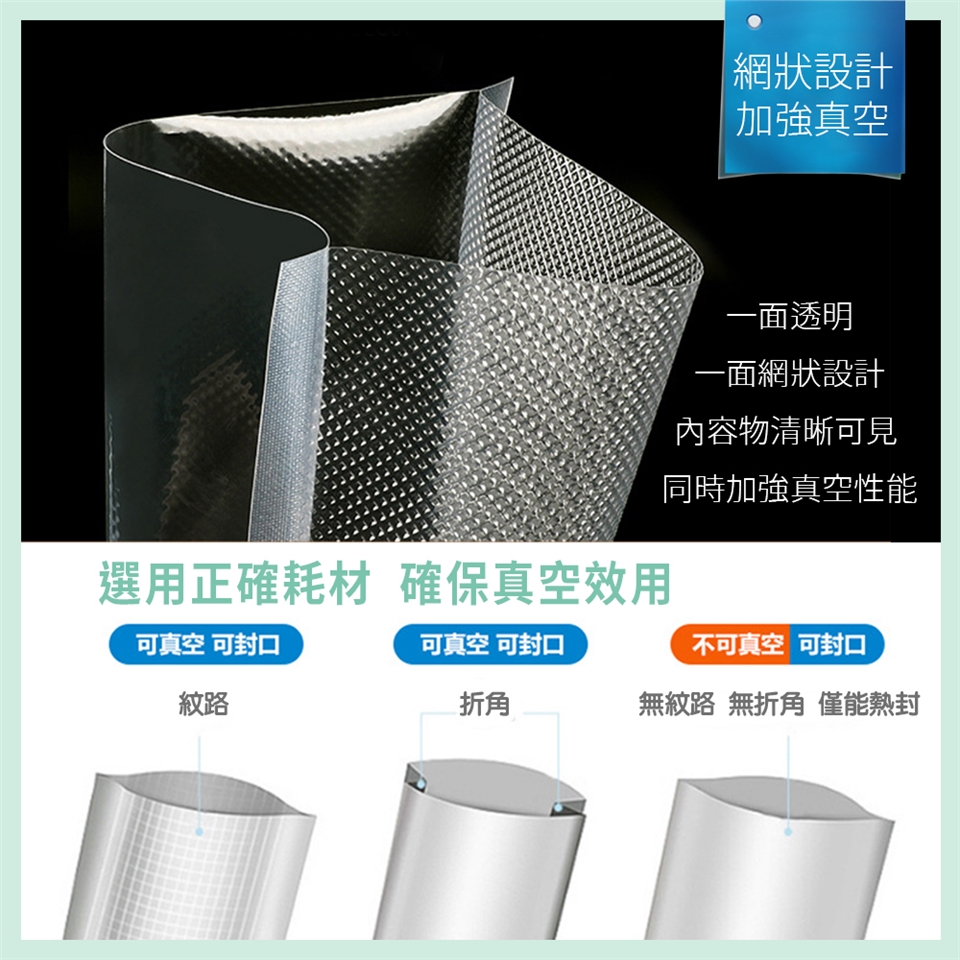 ※單面紋路,食材清晰可見,網紋抽氣真空順暢